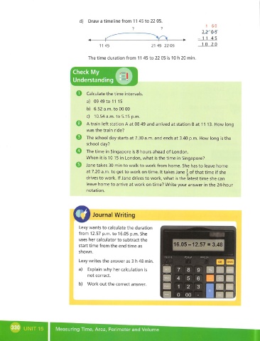 d) Draw a timeline from 11 45 to 22 05.