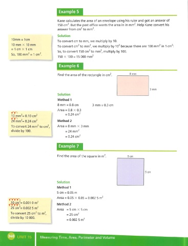 150 cm^ But the post office wants the area in in mm^ Help Kane convert his