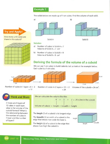 We can use 1-cm cubes to build cuboids. Let us look at the example below.