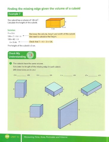 h = 3 cm Check that 7 x 6 x 3 = 126.