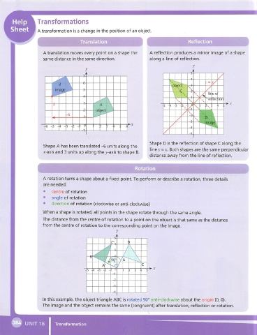 Sheet A transformation is a change in the position of an object.