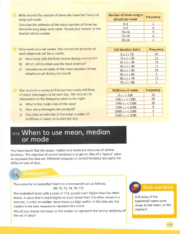 Dina works at a call centre. She records the duration of Call duration (min) Frequency
