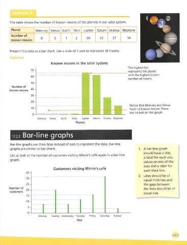 Bar-line graphs use thick lines instead of bars to represent the data. Bar-line