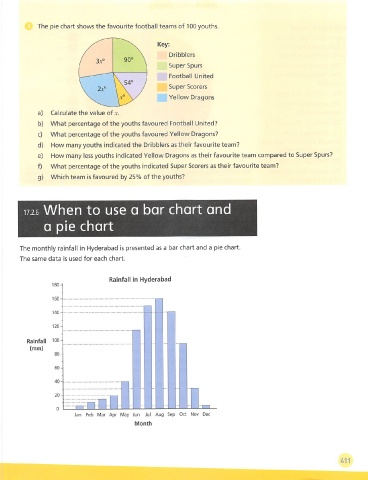 The monthly rainfall in Hyderabad is presented as a bar chart and a pie chart.