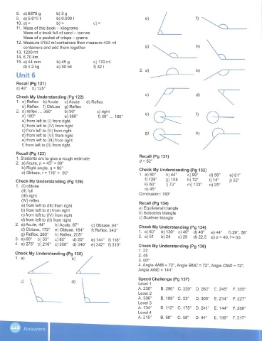 d) Obtuse. 172° e) Obtuse, 164° f) Reflex, 343° 1. a)60° b)130° c)40° d) 40° e)44'