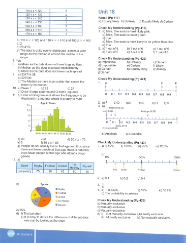 8. a) Mean as the data does not have huge outliers d) impossible e) Certain f) Likely