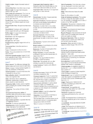 Interior angles: Angles that exist inside of Ungrouped data frequency table: A Axis of symmetry: A line that cuts a shape