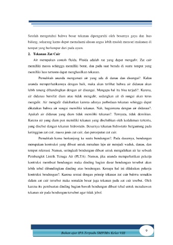 dalam zat cair tersebut maka semakin besar juga tekanan pada zat cair tesebut. Oleh