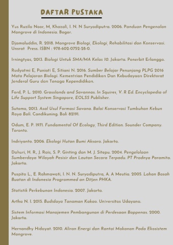 Djamaluddin, R. 2018. Mangrove Biologi, Ekologi, Rehabilitasi dan Konservasi.