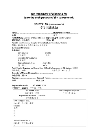 STUDY PLAN (course work)