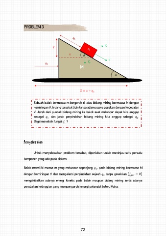 Balok memiliki massa m yang meluncur sepanjang , pada bidang miring bermassa M