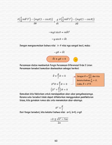 Dari fungsi tersebut, kita ketahui bahwa nilai : a=1, b=0, c=g/l