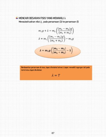 Berdasarkan persamaan di atas, dapat diketahui bahwa λ dapat mewakili tegangan tali pada