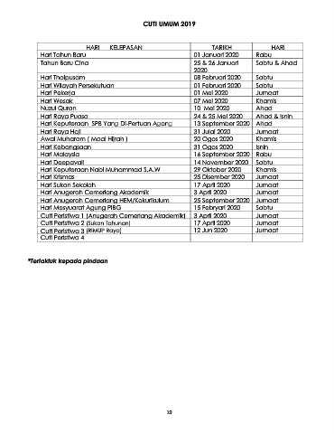 CUTI UMUM 2019