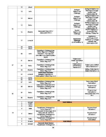 17 22 Rabu Peperiksaan Pertengahan Aktiviti Kelab Perjumpaan/Aktiviti