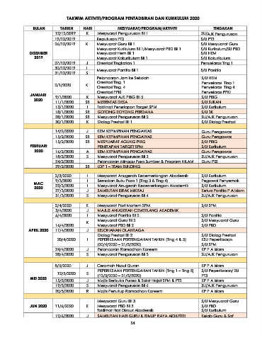TAKWIM AKTIVITI/PROGRAM PENTADBIRAN DAN KURIKULUM 2020