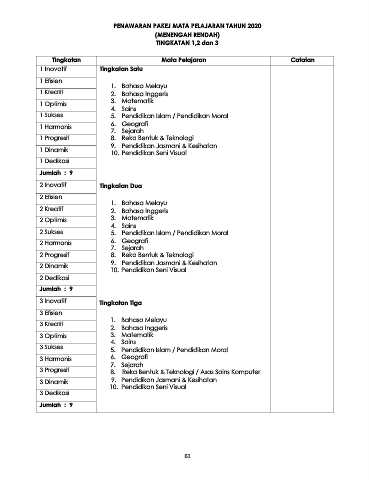 Tingkatan Mata Pelajaran Catatan