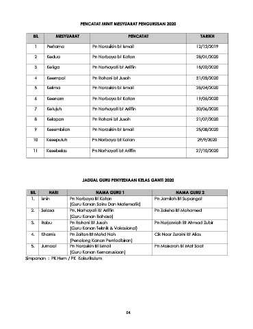 JADUAL GURU PENYEDIAAN KELAS GANTI 2020