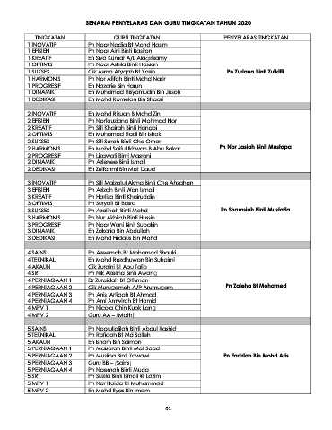 SENARAI PENYELARAS DAN GURU TINGKATAN TAHUN 2020