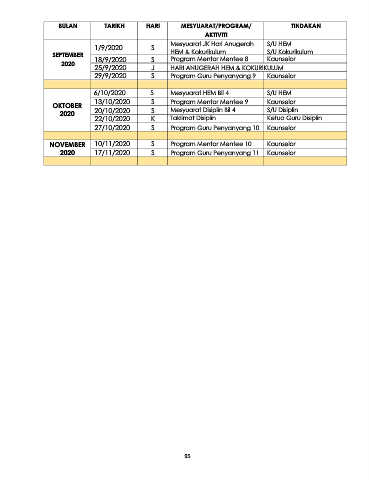 BULAN TARIKH HARI MESYUARAT/PROGRAM/ TINDAKAN