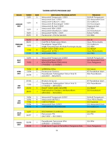 TAKWIM AKTIVITI/PROGRAM 2021