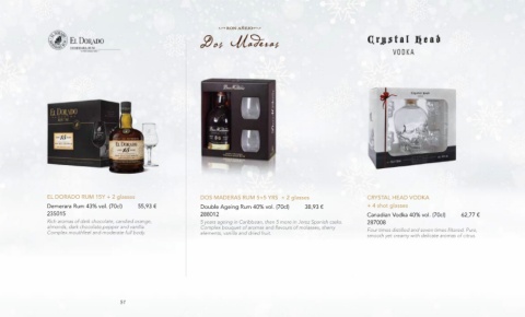 EL DORADO RUM 15Y + 2 glasses DOS MADERAS RUM 5+5 YRS + 2 glasses CRYSTAL HEAD VODKA