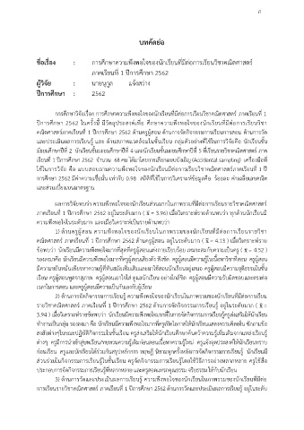ภาคเรียนที่ 1 ปีการศึกษา 2562 อยู่ในระดับมาก ( x = 3.96) เมื่อวิเคราะห์รายด้านพบว่า ทุกด้านนักเรียนมี