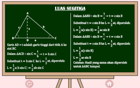Garis AD = t adalah garis tinggi dari titik A ke Substitusi t = c sin B ke L = 2 at, diperoleh: