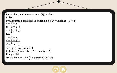 ∆CBD ≅ ∆ABC (sebangun) CD BC BD AB = = BC AC BC AC 1 + cos 2θ 2 cos θ sin 2θ 2 sin θ ⇔ = ⟺ = 2 cos θ 2 2 2 cos θ) 2 ∴ cos 2θ = 2 cos θ − 1 ∴ sin 2θ = 2 sin θ cos θ