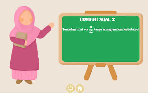 Perhatikan pembuktian rumus (5) berikut. Bukti: Untuk rumus perkalian (1), misalkan + = dan − = . + = − = + 1 = + 2 Dan + = − = - 1 = − 2 Sehingga dari rumus (1). 2 sin cos = sin + + sin ( − ) Kita peroleh: 1 1 sin + sin = 2 sin + cos − 2 2
