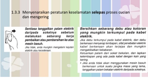 1.3.3 Menyenaraikan peraturan keselamatan selepas proses cucian dan mengering