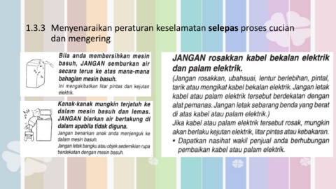 1.3.3 Menyenaraikan peraturan keselamatan selepas proses cucian dan mengering
