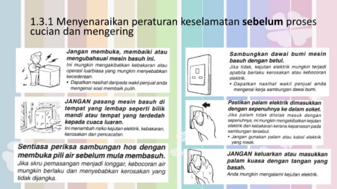 1.3.1 Menyenaraikan peraturan keselamatan sebelum proses cucian dan mengering