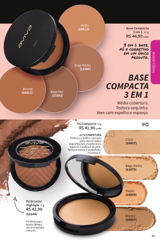 Nude (10796) Bege Claro (11019) Bege (10797) Bege Médio (10798) Bege Canela (11020) Mel (10799) Natural Bege Bege Mel Canela Highlight 9 g