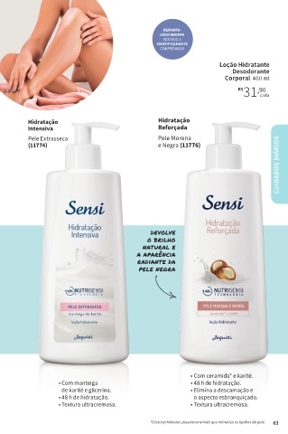 • Com óleo de semente • Com óleo de • Com manteiga • 48 h de hidratação.