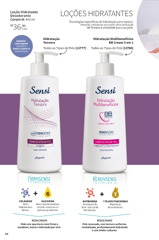 Pele om aparên ia mais firme e Pele renovada, com textura uniforme, Pele madura revitalizada, hidratada Pele restaurada, com mais