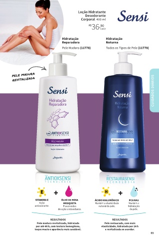 Pele om aparên ia mais firme e Pele renovada, com textura uniforme, Pele madura revitalizada, hidratada Pele restaurada, com mais
