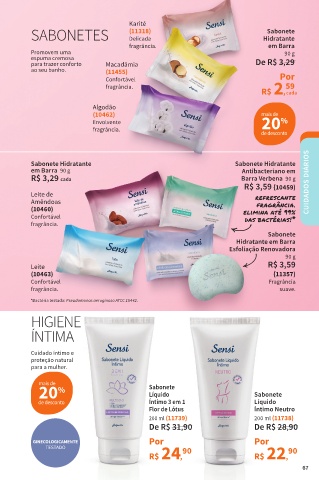 R$ 18,90 cada Maciez e hidratação para áreas R$ 2,cada
