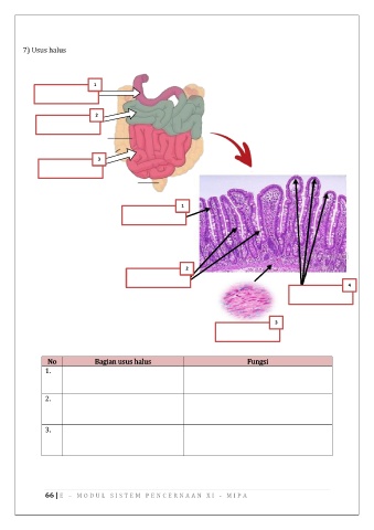 7) Usus halus 1 2 3 1 2 4 3 No Bagian usus halus Fungsi 1. 2. 3. 66 | E – M O D U L S I S T E M P E N C E R N A A N X I - M I P A