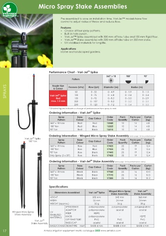 Ordering Information - Winged Micro Spray Stake Assembly (refer page 16 for performance)