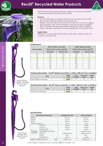 Adaptor Ordering Information - ReuZit Spray Assembly w/ Stake, 400 mm Tube & Adaptor