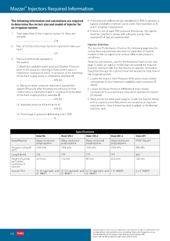 .......................................................L/h models of Mazzei Injectors at various differential pressure