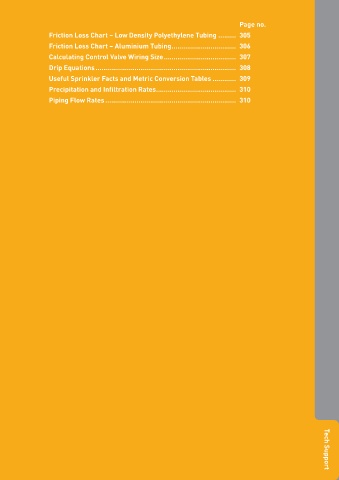 Friction Loss Chart – Low Density Polyethylene Tubing ......... 305