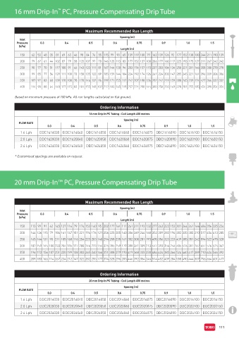 16 mm Drip-In PC, Pressure Compensating Drip Tube