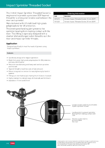 The Irritrol Impact Sprinkler Threaded Socket is Ordering Information
