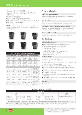 MPR Plus Spray Nozzle Series Model List 3.7 m (12’): 24°; 4.6 m (15’): 28°;