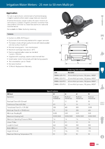 Irrigation Water Meters - 25 mm to 50 mm Multi-jet