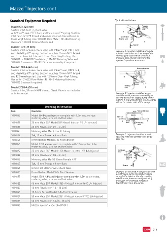 Suction inlet includes check valve with Viton™ seat, PTFE ball Example A. Injector installed around a
