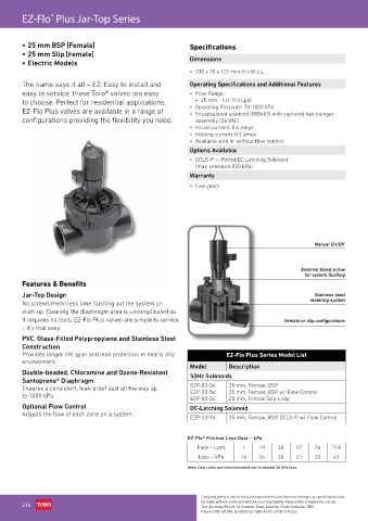 EZ-Flo Plus valves are available in a range of • Operating Pressure: 70-1000 kPa