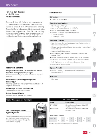 These full-featured, rugged, debris-resistant valves • Operating Pressure: Electric; 70-1200 kPa